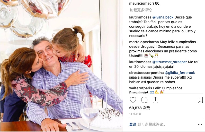 (阿根廷华人网2月9日讯 黄东)昨天,阿根廷总统马克里庆祝了自己60岁生日,并通过社交网络Facebook和Instagram发布了一张庆生照片,同时附上了简单的一句话:“60!”