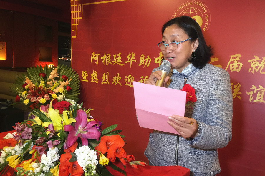 阿根廷华助中心执行主任薛文强,宣读了各地发来的贺电、贺信。