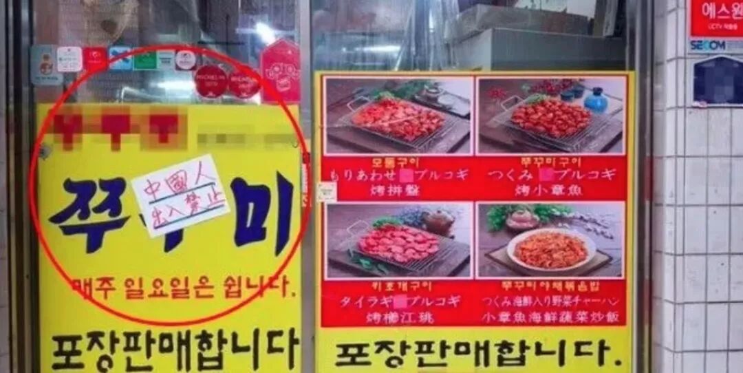 在韩国,部分商户开始拒绝接待中国游客,并在店门口挂上告示写着“中国人出入禁止”。