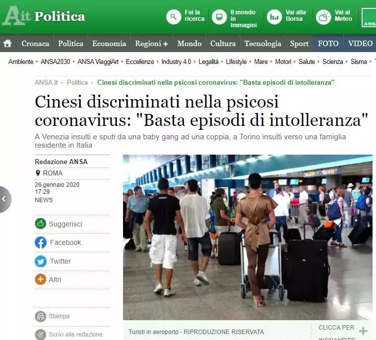 在意大利,1月30日有2例被确诊为新型冠状病毒个案。而此前所有疑似病例被排除感染时,意大利的侨胞们就因此次疫情遭受了不公的待遇与可怕的攻击,如今的处境将会更加的艰难。