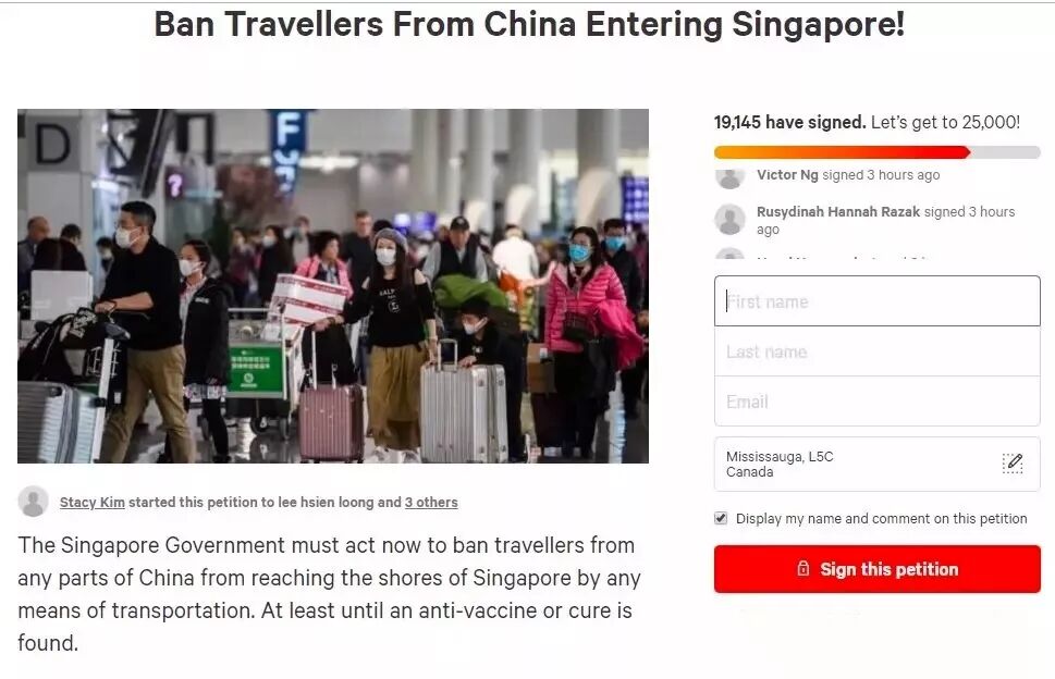 在新加坡,已有人发起请愿,要求禁止所有中国游客进入,并有人评论称:“我们不吃蝙蝠,不要承担后果”。