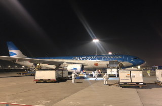北京时间2021年2月25日凌晨5时许,一架载有首批中国国药集团新冠疫苗的阿根廷运输机从北京启程,预计经过27个小时零20分钟的飞行,将于当地时间25日晚抵达布宜诺斯艾利斯。这是目前为止运送中国疫苗航程最长的航班之一。