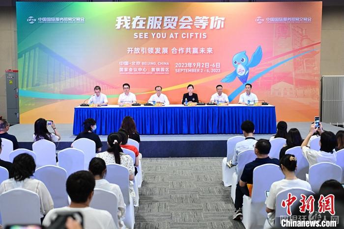 8月13日,“我在服贸会等你”2023年服贸会新闻发布会在北京举行。图为发布会现场。 中新社记者 田雨昊 摄