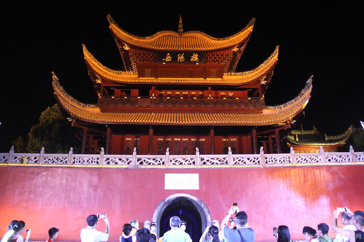 “先天下之忧而忧,后天下之乐而乐。”北宋范仲淹作《岳阳楼记》令岳阳楼名噪天下,更成为岳阳市的靓丽名片。当晚,海外华媒代表参访了岳阳楼景区夜景,感受“千古名楼”的独特魅力。矗立在岳阳古城西门城墙之上的岳阳楼,肇自汉晋,是中国江南三大名楼中唯一保持原址古貌的纯木古建筑。其前身是东吴将领鲁肃建造的阅兵楼,唐代起逐步成为历代文人雅士游览观光、吟诗作赋的胜地。(完)