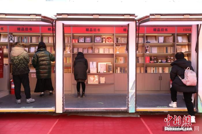 资料图:市民在北京王府井书香市集上选购书籍。中新社记者 赵隽 摄