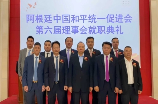 2025年12月26日,阿根廷中国和平统一促进会举行第六届理事会就职典礼,王卫大使、任强参赞以及阿统促会新任会长严祥兴、前任会长袁建平、罗超西、何文强,第六届理事会全体理事、前五届理事会代表等60余人出席。