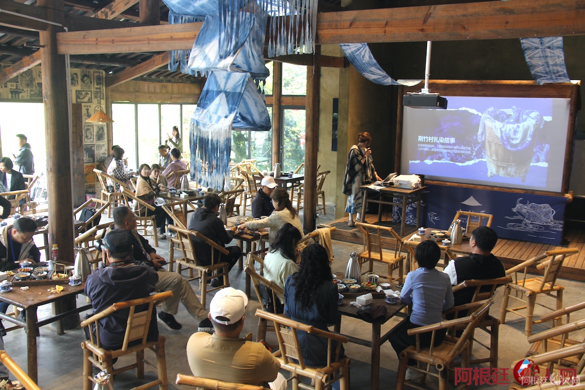 参访团重点参观了“非遗传习所”。在非遗传承人的指导下,多位华文媒体代表亲身体验了传统扎染技艺。从捆扎布料、浸入染料,到拆线晾晒,每一步都充满惊喜。当一幅幅蓝白相间、纹样独特的作品展开时,嘉宾们纷纷拍照留念。“亲手做扎染,才懂得手工艺的温度,这样的体验让文化真正活起来。”