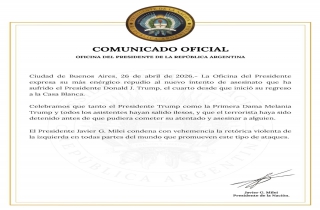 (阿根廷华人网4月26日讯 黄东)日前,美国总统特朗普在出席记者晚宴期间发生枪击事件。阿根廷政府随即发声,支持特朗普并谴责此次袭击。